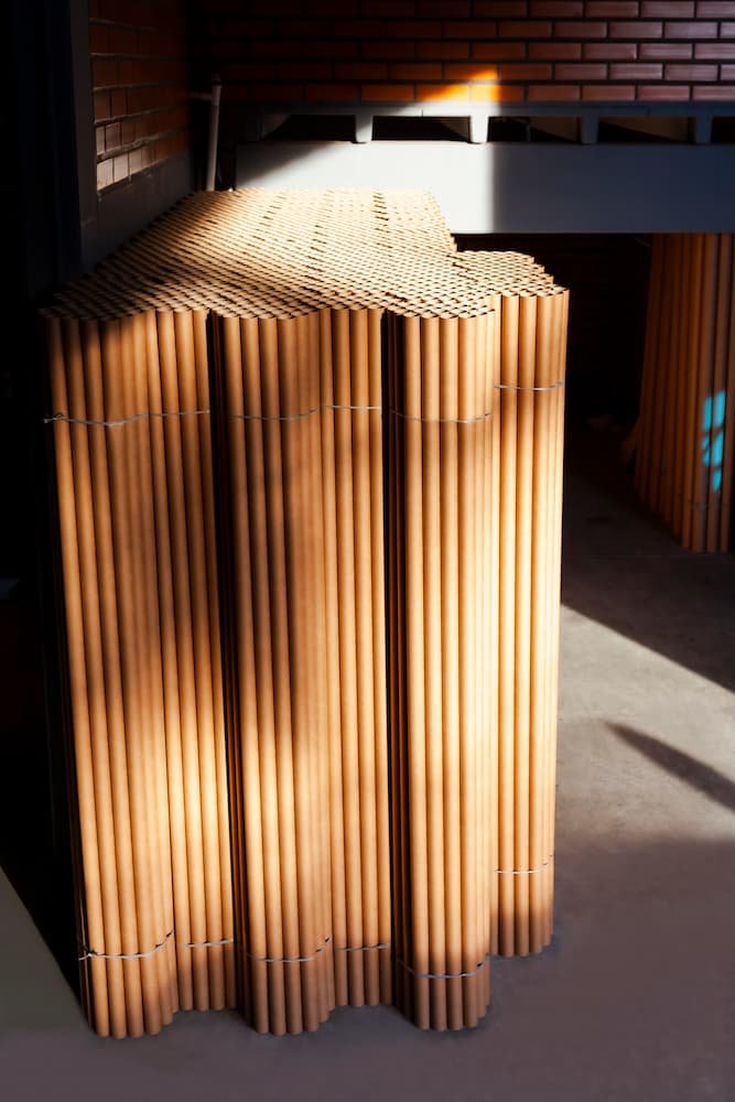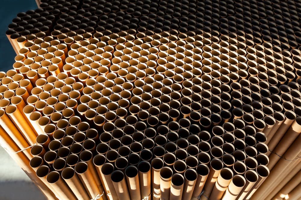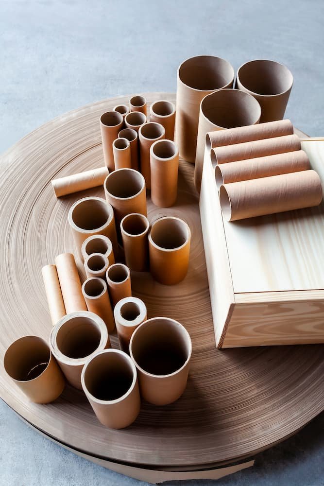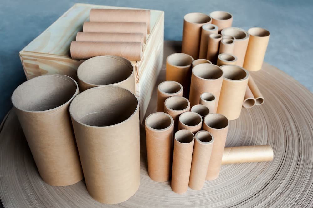 Cilindros de papel reciclado altamente resistentes, ocos, utilizados para armazenamento e transporte de produtos, embalagens e em processos fabris.